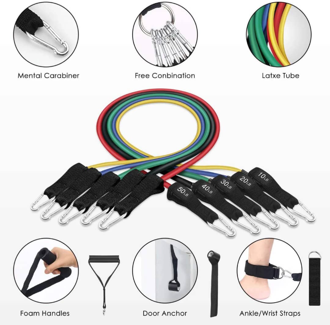 - 5 élastiques (10, 20, 30, 40, 50 lbs)